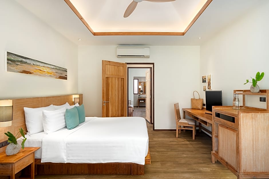 Picture waking to the sound of the sea and stepping onto white sands that meet a private pool and direct beachfront access. A private beach area (free) and an outdoor pool offer sun-soaked options with scenic views, while a waterslide adds a splashy touch of whimsy. For water fun, on-site water sports facilities are free, and snorkeling is available for an extra charge.